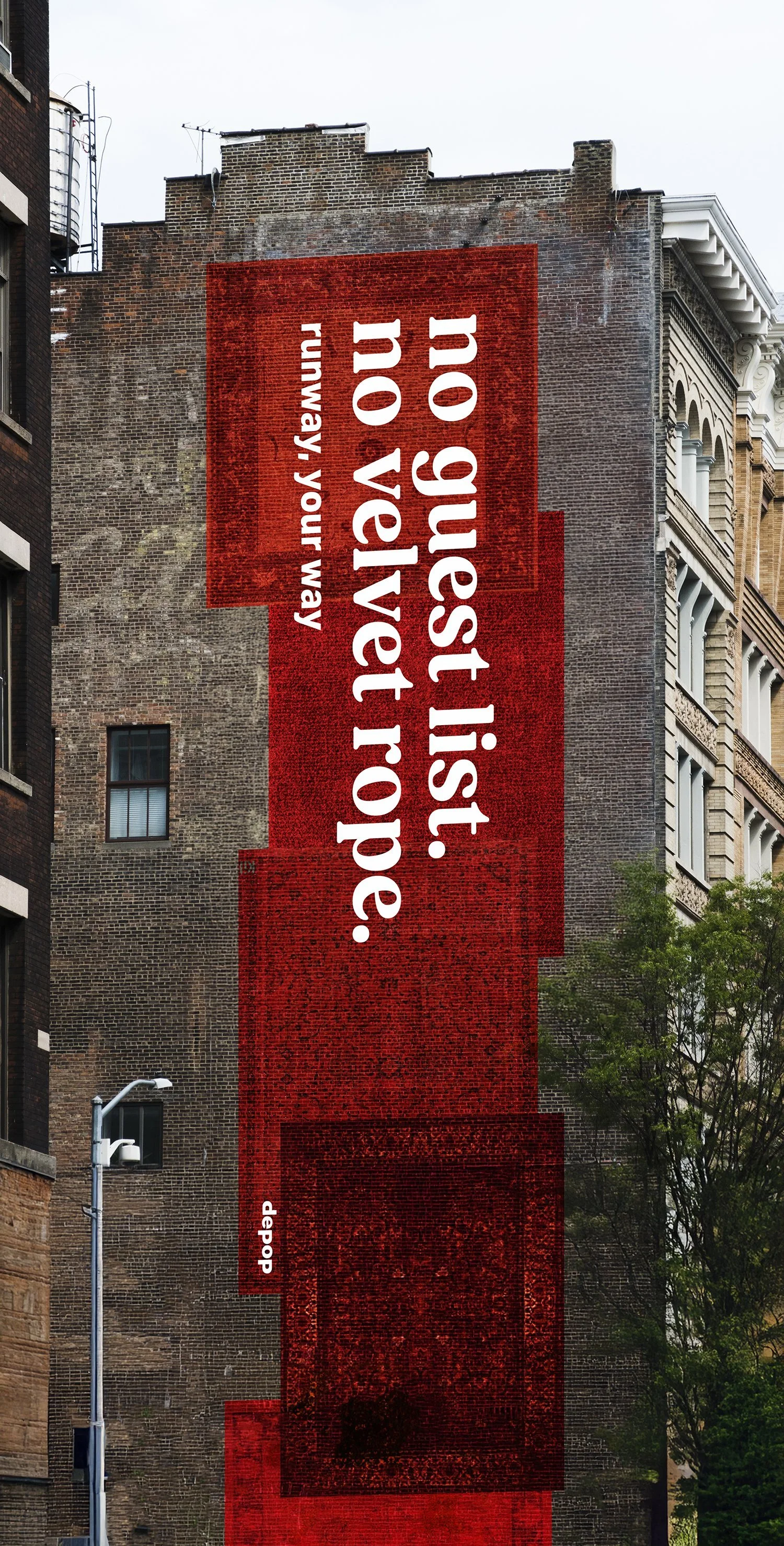 Marketed with mysterious thrifted red carpets lining the streets of London, gracing the Tube, and making a statement in front of traditional storefronts.